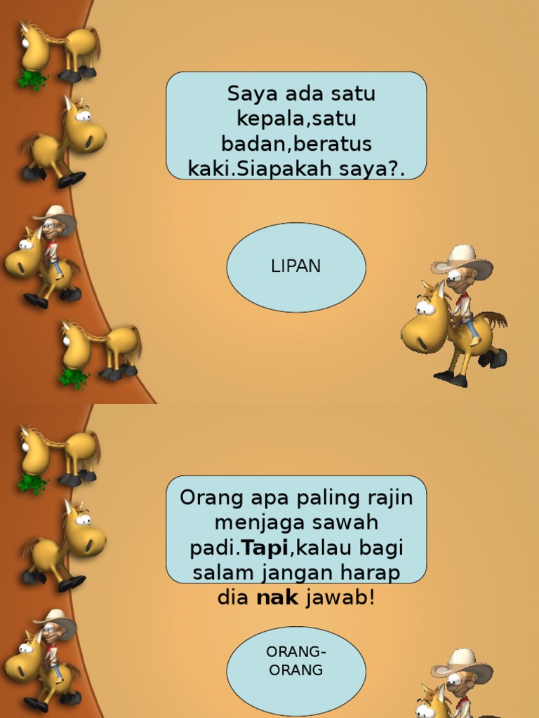 Join Facebook to connect with Teka-Teki Teka-Tekok and others you may know. Saya ada 3 kepala 4 tangan 5 kaki. Soalan dan jawapan di bahagian ini adalah bertahap susah.